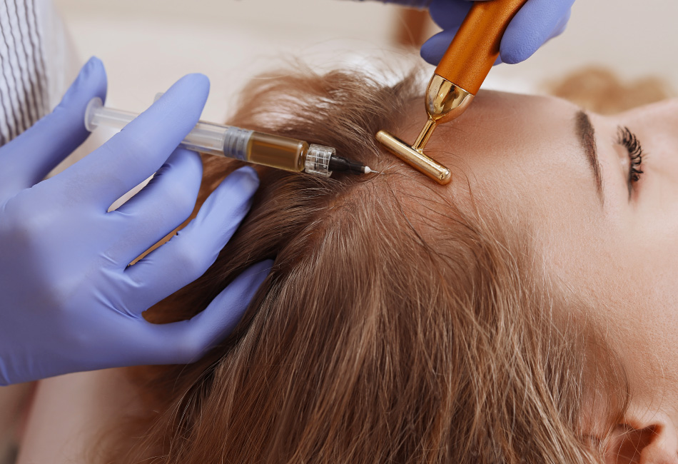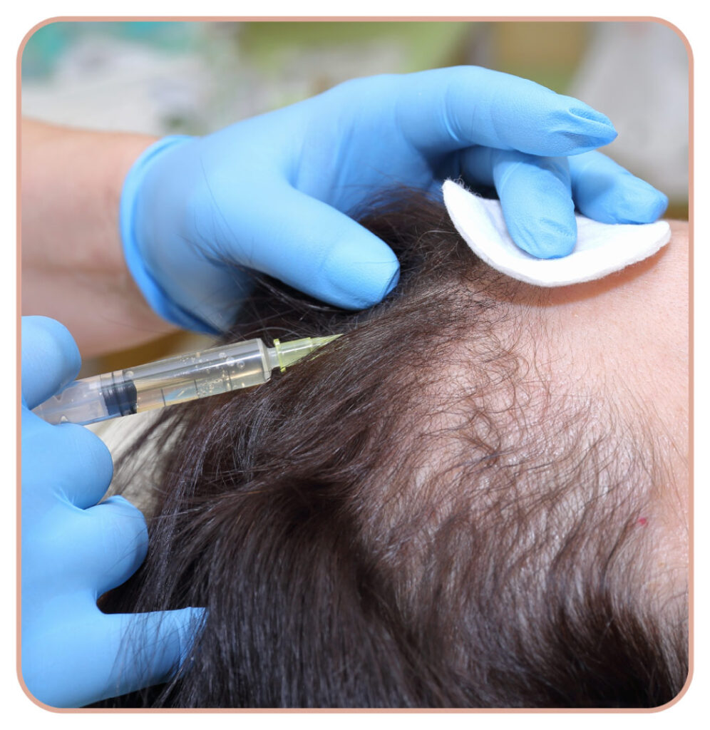 This treatment involves injecting your body’s own plasma into the hair roots. The plasma rich in platelets contains hair growth boosters and stimulate healthier hair growth.